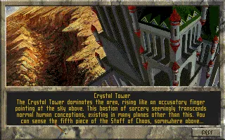 Another province, another chore for the Mages Guild. This time Corim Ashlen, Loremaster of the Lilandril chapter, tasks us with retrieving a diamond stolen by priests from the Temple of the Mad God. With the proper rituals, this diamond will reveal the way to the Crystal Tower. The temple dungeon is so rote that it is hardly worth mentioning. We enter, kill some monsters, gain some loot, and acquire the diamond before returning to Corim for the location of the next dungeon.