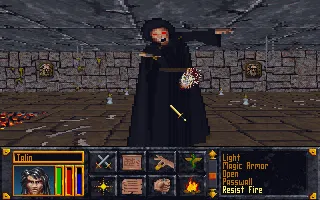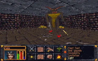 Once we find the key, we return to the locked door and open it. Behind it lies one of our most powerful foes yet, a massive fire daemon. Despite its imposing appearance, Talin (now level 17) destroys the creature with a single cast of his potent Spirit Arrow spell.