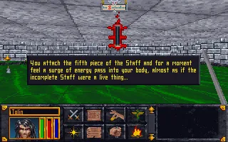 The lowest level of the dungeon features a large crypt which contains the staff piece, secured via riddle.