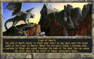 Map now in hand, our hero returns to Halfas Varn and is rewarded with the location of the Crypt of Hearts.