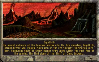 The time has come to complete the Staff of Chaos. At the Ebonheart palace in the province of Morrowind, King Casik implores Talin to find the Hammer of Gahren in Black Gate. The hammer, when struck upon the Anvil of Mithas (which is in the possession of the king), will produce a sound that will guide the one who hears it to the entrance of Dagoth-Ur.