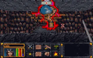 In my opinion, Black Gate is easily the worst dungeon in the game and the point where Arena begins to overstay its welcome. It has nothing new to offer us, and functions primarily as filler and a roadblock to the more exciting penultimate dungeon. The first level isn’t too egregious, but the second level is massive in scale, and we need to find a key to progress. There are three different locked doors to the room with our objective, and three corresponding keys, of which we only need to find one. But given the size of the dungeon, the countless generic rooms, and the many waterways hampering progress, this amounts to finding a needle in a haystack. But alas, keys need finding and usurpers need slaying. Vigorous right-walling ensues.