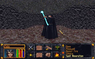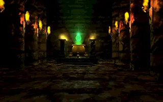 For hours they fight. Sword meets stave, spell meets spell, champion meets usurper. Every muscle in Talin’s body burns as he fights on, he has never faced an enemy like this one, and all his effort seems to account for little against this indefatigable foe. Yet he fights on, everything has led to this moment, and nothing will stop him. He attacks his nemesis with newfound vigor, and at last, begins to gain ground. Again and again he lashes out with the Sword of Heroes, again and again he brings the full weight of his magic power against the usurper, who ever so slowly begins to crumble. With a final furious scream, Talin plunges the Chrysamere through the chest of Jagar Tharn. A wave of force erupts from the mad mage and he is thrown backwards, miraculously holding on to the sword as he does so. Leaping to his feet, he sees Tharn on his knees, a shield of shimmering aquamarine energy protecting him as he surely recovers from his wound. This is his chance. He runs to the cell that was guarded by the mage, cleaving through the metal with the enchanted sword. Within the cell lies an altar, on which sits a great jewel, burning with green fire. Wielding the Staff of Chaos, Talin grabs the jewel…