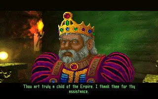 With that, we witness the end of Arena. Robbed of the Jewel of Fire, the source of his power, Tharn burns away and melts into nothingness. The power of the jewel combines with that of the Staff of Chaos, opening the way to Tharn’s prison dimension. Emperor Uriel Septim VII returns, thanking Talin for his feat and granting him the title of Eternal Champion, a position of honor at his side.