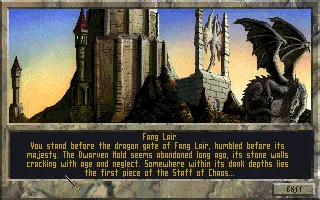 Talin battles his way through giant spiders, skeletons, bandits of various shapes of sizes, and of course, many goblins on his way through the keep and then the goblin caves. At the far end of the caverns, he at last discovers the requested parchment along with the bodies of a few other unfortunate souls undoubtedly sent by Blubamka. He returns to the palace with his prize and is finally rewarded with the location of the Fang Lair. He wastes no time in setting out.