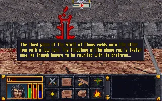 The answer is “footsteps.” Behind the locked door lies the third piece of the Staff of Chaos.